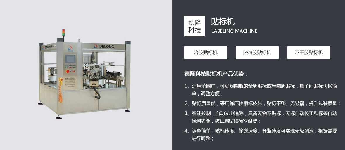 青島德隆自1995年創(chuàng)建以來(lái),始終秉承創(chuàng)新與發(fā)展的優(yōu)良傳統(tǒng),依靠技術(shù)與服務(wù)贏得客戶的信賴與尊重。在貼標(biāo)機(jī)向?qū)W⒒⒍嘈袠I(yè)領(lǐng)域發(fā)展并成就了中國(guó)異型瓶貼標(biāo)市場(chǎng)的經(jīng)典之后,應(yīng)市場(chǎng)不斷變化的客戶需求,優(yōu)化產(chǎn)品結(jié)構(gòu),引進(jìn)吸收國(guó)內(nèi)外的流體包裝設(shè)備理念,在貼標(biāo)機(jī)專業(yè)化地位穩(wěn)固的前提下,逐步實(shí)現(xiàn)關(guān)聯(lián)產(chǎn)品的多元化。   目前,青島德隆已經(jīng)成為國(guó)內(nèi)能同時(shí)滿足圓瓶、方瓶、扁瓶、錐度瓶、球形瓶、定位瓶等瓶型的高、中、低速多功能冷(熱)膠貼標(biāo)領(lǐng)域的廠家。隨著碼/卸(瓶/罐)垛機(jī)、沖瓶機(jī)、灌裝擠(旋/壓)蓋機(jī)、全自動(dòng)紙箱包箱設(shè)備、排序機(jī)、機(jī)器人碼/卸垛設(shè)備、激光噴碼機(jī)的運(yùn)行成功,一個(gè)真正的流體包裝設(shè)備方案解決專家已經(jīng)成熟。   青島德隆集團(tuán)的···......[查看詳情]