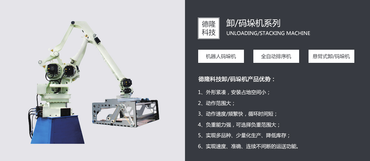 機(jī)器人碼垛機(jī) 懸臂式卸/碼垛機(jī) 接力式碼垛機(jī) 全自動(dòng)排序機(jī) 全自動(dòng)整層碼/卸瓶垛機(jī) 通過(guò)式全自動(dòng)打包帶機(jī)